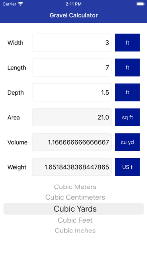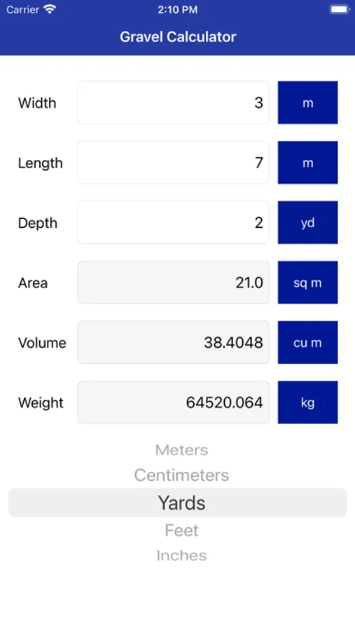 Gravel Calculator is the fastest real-time calculator a gravel that quickly convert between the imperial and the metric system’s units for Width, Length, Depth, Area, Volume and Weight in real time and without any hassle.