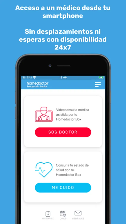 Homedoctor Protección Senior te ofrece videoatención médica 24 × 365 inmediata, sin citas, desde las urgencias de hospitales privados.