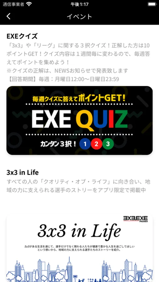 3人制バスケットボールのブランド「3x3.EXE」の公式スマートフォンアプリです。