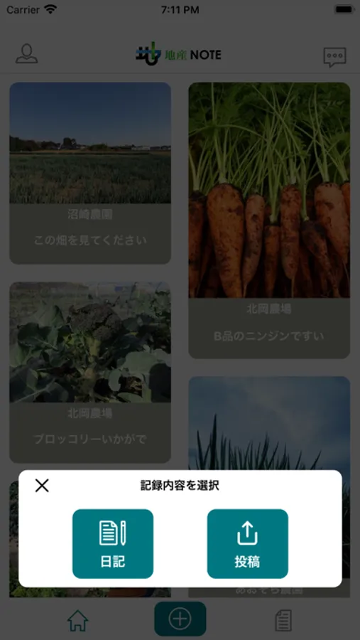 地産NOTE は農家の収穫情報を発信するアプリです。