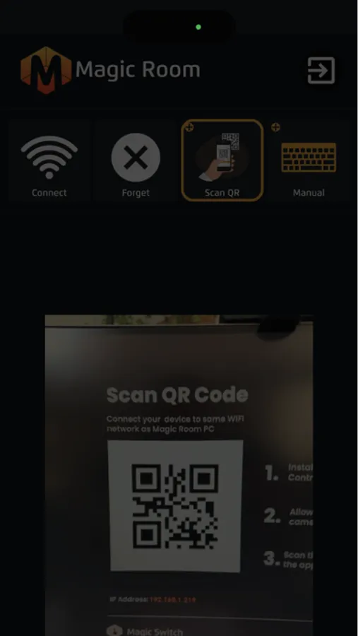 Camera Use: The Magic Room Controller harnesses the power of your device's camera to scan QR codes. This feature allows you to pair the device with the system without the need for manually typing the server IP address. By scanning QR codes, the app decodes Speech Commands, enabling your device to activate various Magic Room functions such as playing videos, changing lighting, and more.