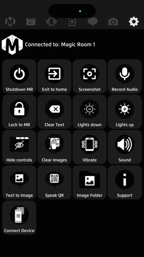 Microphone Use: The Magic Room Controller also utilises the device's microphone, enabling users to vocalise Speech Events to the Magic Room system. Speak words into your device to generate text, images, sentences, and communication symbols on the connected Magic Room displays. You can also make voice recordings and send them to an ongoing Magic Room activity.