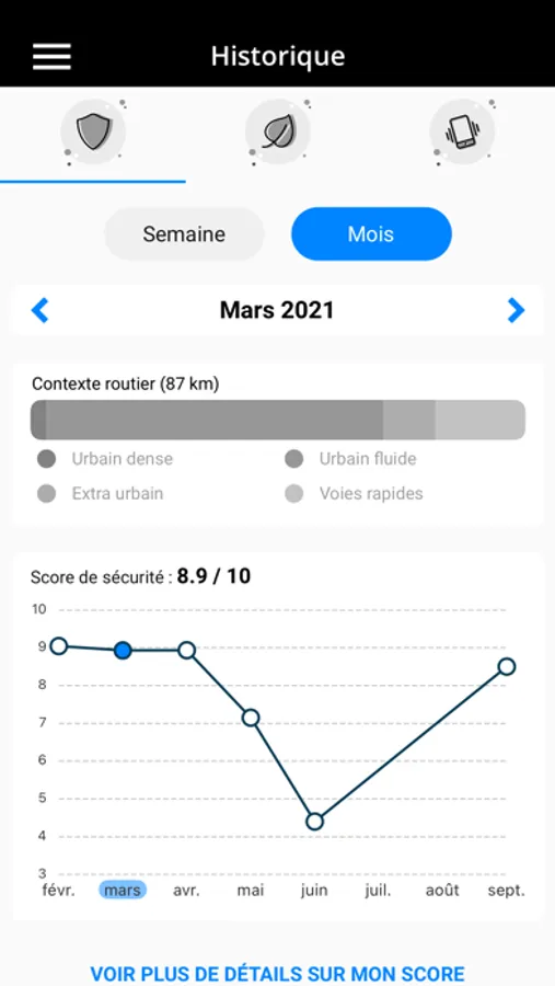 Grâce à une analyse fine de votre conduite, suivez votre progression de semaine en semaine grâce à de nombreux graphiques et réduisez votre facture d’entretien et de carburant.