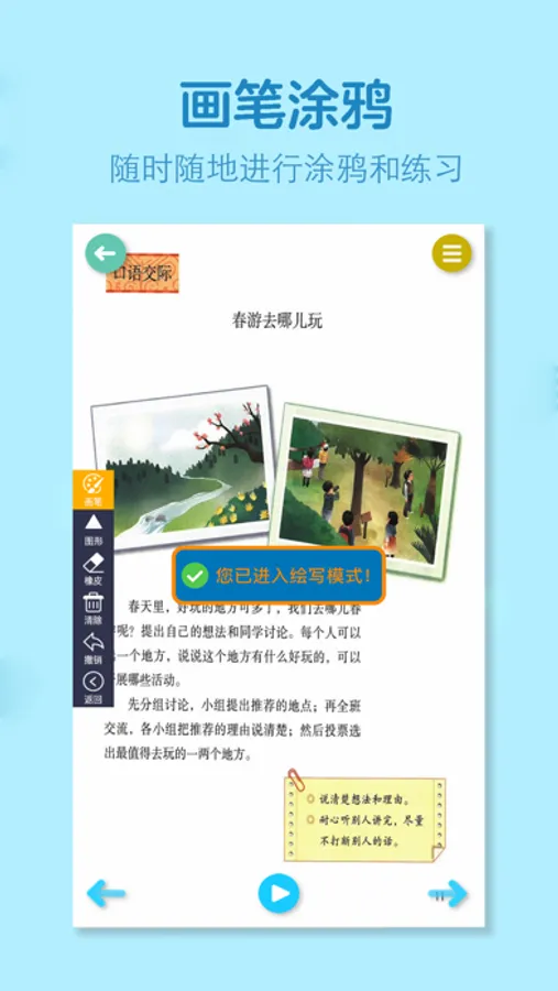 【2】画笔功能,全屏涂鸦让学习更加的有趣让学习更加高效率。完全同步最新发行教材,绝无缺漏页现象。