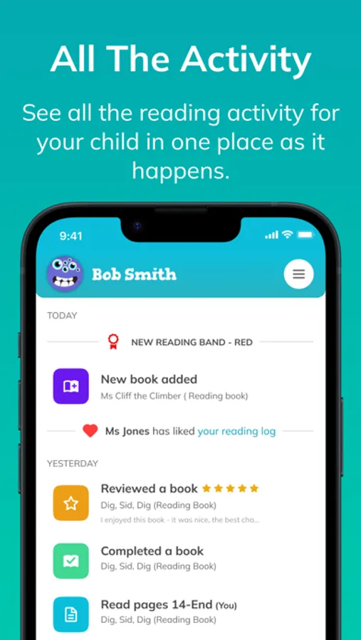 The new activity feed allows you to scroll through or the reading events for your child including reading band changes, reviews and of course the reading logs.