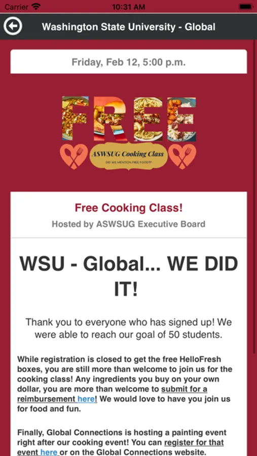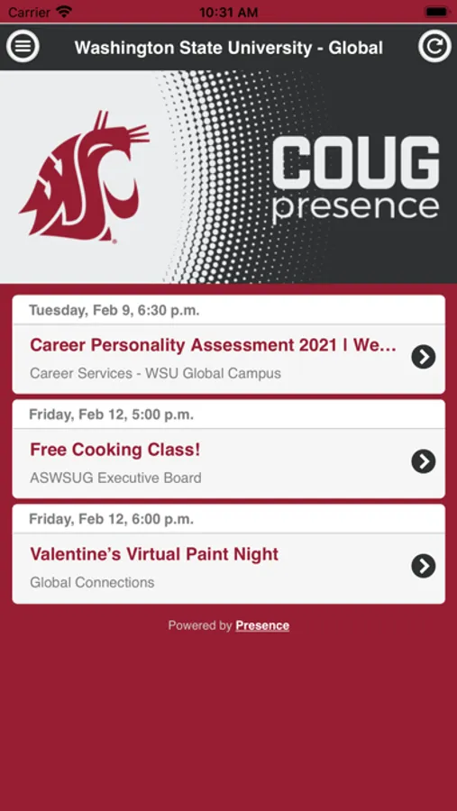 Use the Washington State University - Global Events app to find out what events are happening and find out how you can get involved on campus!