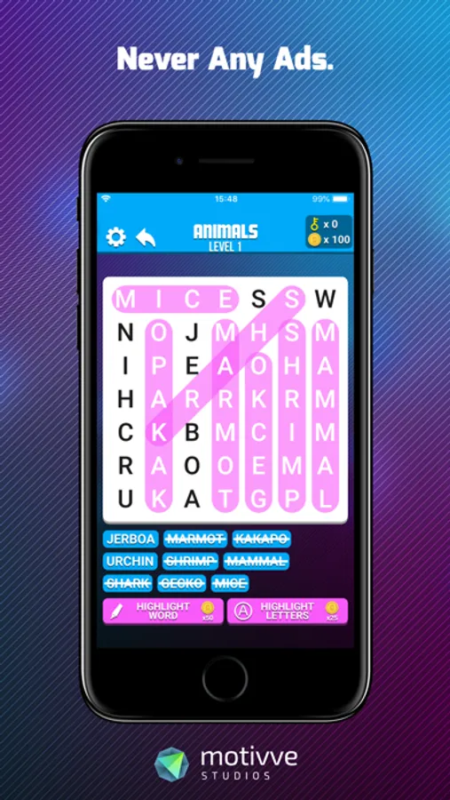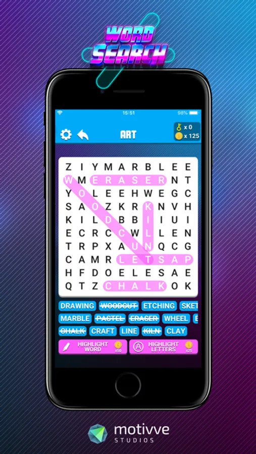 Classic word search puzzle game with a retro arcade look and feel! NEVER ANY ADS and entirely FREE TO PLAY.