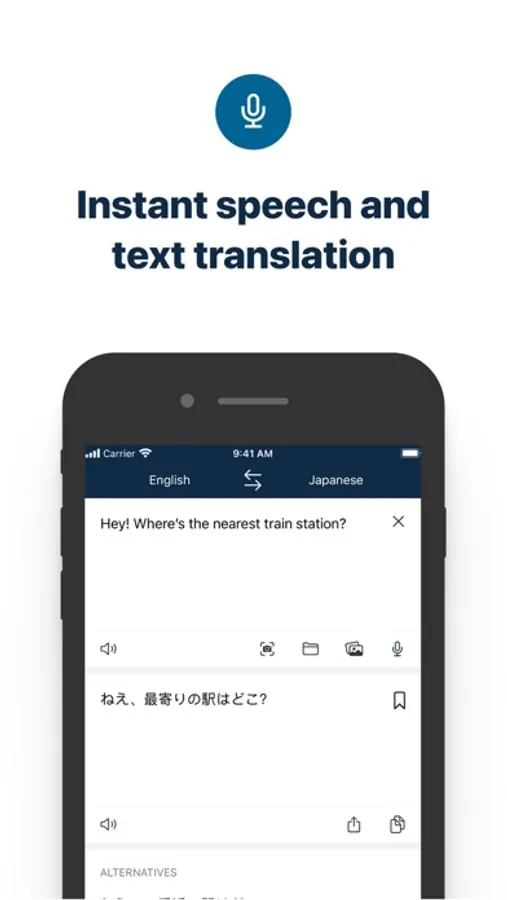 - Translate speech to text: Use your microphone to translate spoken text in most languages