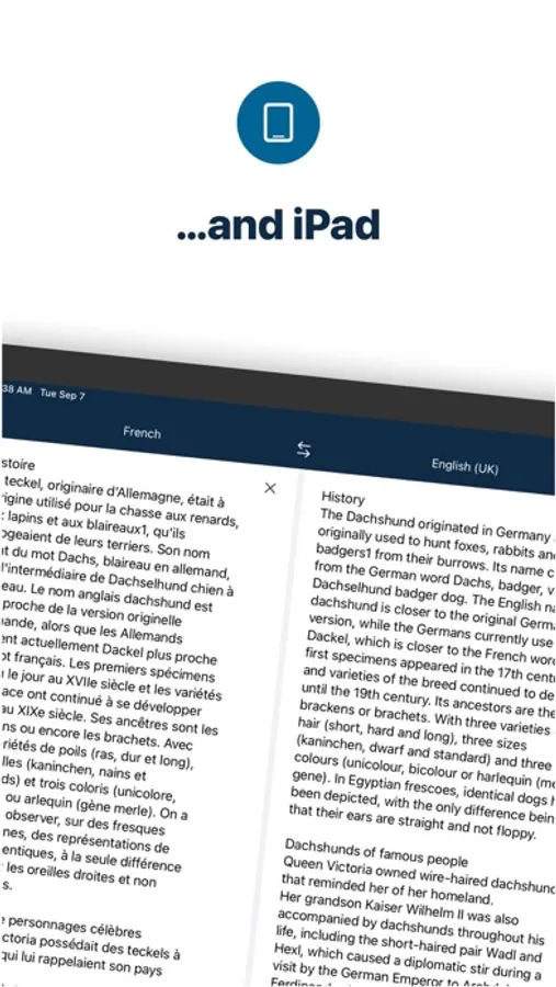 - Dictionary: Use the dictionary to learn more about the words you translate, such as how to use them in different contexts (11 language pairs)