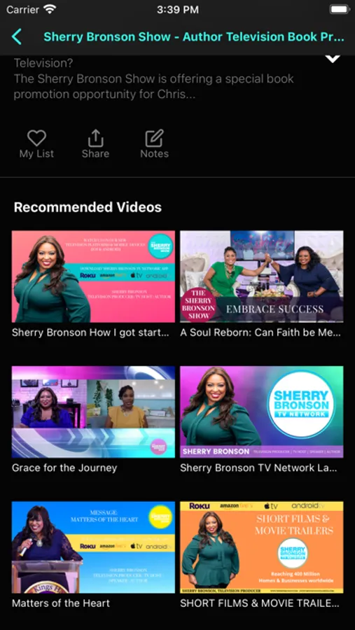 Sherry Bronson TV Network features a variety of rich content that addresses issues of the human condition. We share faith-focused television programs, interviews with influential leaders in the marketplace, and showcase well-produced short documentaries from emerging filmmakers. We strive to provide thought-provoking and heartfelt stories that make a lasting and positive impact on our viewers. We are connecting with viewers on multiple devices all around the globe.