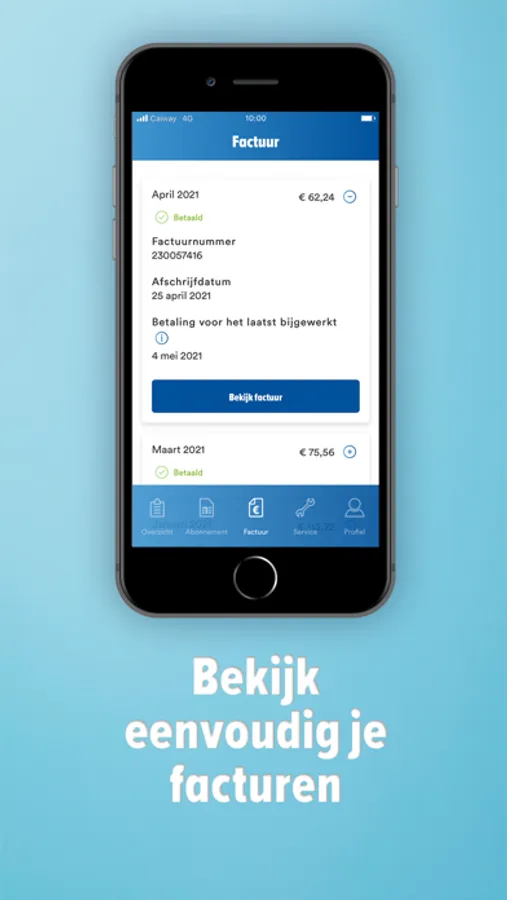 Weet je niet meer of je je laatste factuur betaald hebt? Bekijk in de app je laatste facturen, de betalingen en de specificaties.