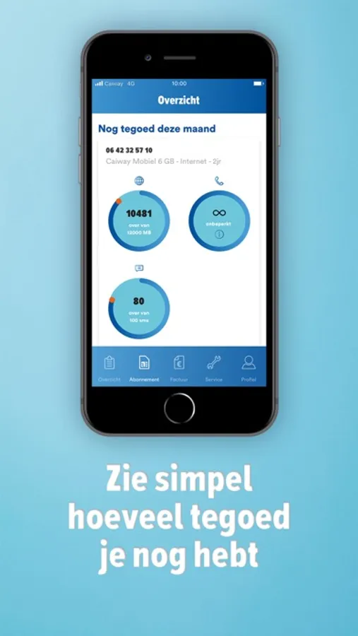 Met de Caiway Mobiel-app heb je altijd en overal inzicht en controle over je verbruik. De app is eenvoudig in gebruik, duidelijk en overzichtelijk. Hieronder vertellen we wat je in de Caiway Mobiel-app kunt vinden.