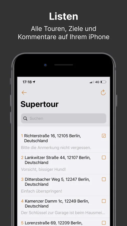 Verwalten, optimieren und navigieren Sie bis zu 250 Ziele pro Tour mit dem xRouten Tourenplaner. Die mobile xRouten App können Sie als Abonnent in Verbindung mit der Web-App nutzen.