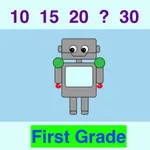 The app starts with addition of numbers 1 through 5, then progresses to numbers adding up to 10, subtraction, missing addend, sequences, and greater-than/less-than comparisons.