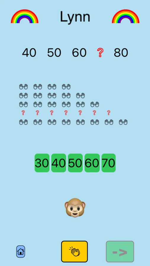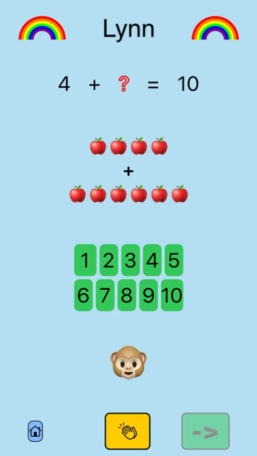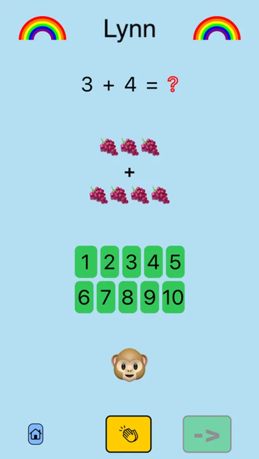 This is a simple math drill but with multiple reward animations. There is no sound, no reading requirement, no keyboard entry (only button clicks).