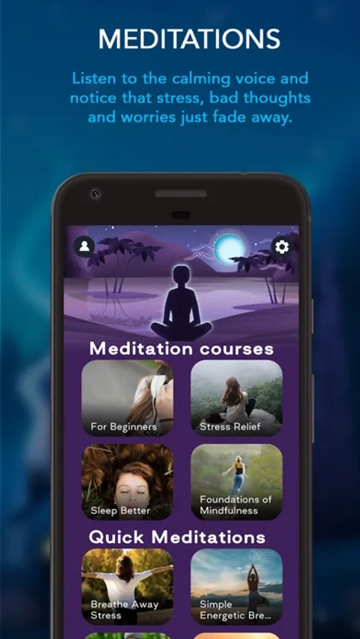 Another easy way to calm down and forget about your daily routine. Listen to the calming voice and notice that stress, bad thoughts and worries just fade away.
