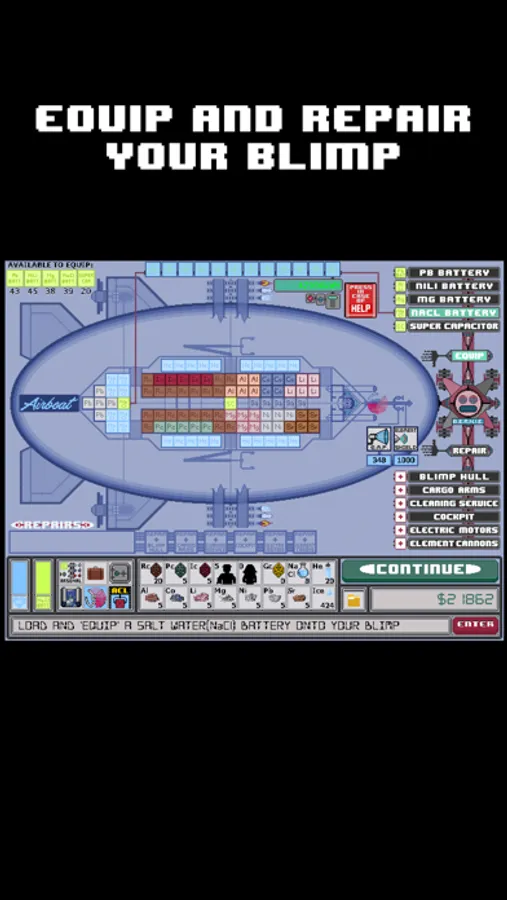 LOAD, EQUIP, AND REPAIR: Load your BLIMP with cargo, upgrade, and repair it from damage.