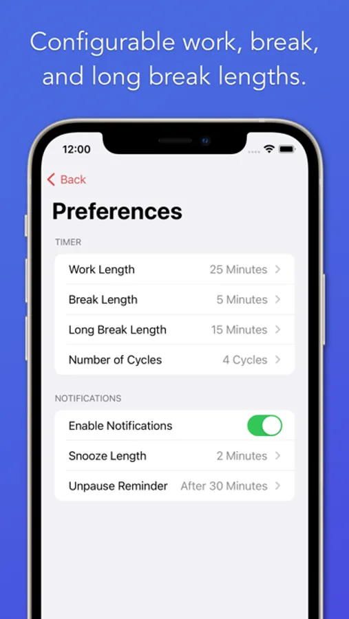 • Actionable notifications, for when you need to pause or snooze to sneak in a few more productivity minutes. (Just don’t make a habit of it!)