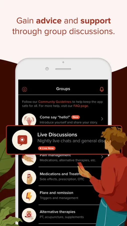 Need to vent? Get advice? Share what’s on your mind? Hop into a daily live chat to join the conversation. They’re often led by our amazing Community Guide, but you can also expect to chat with other advocates and experts, too.