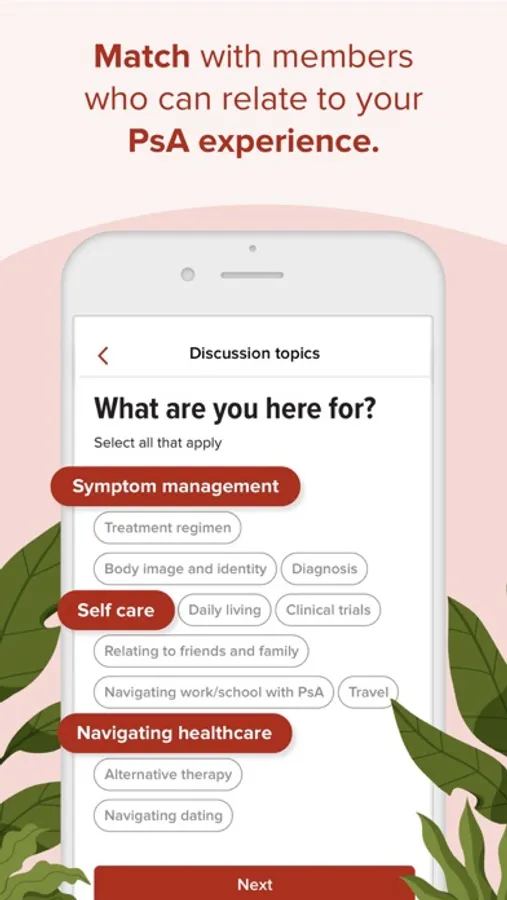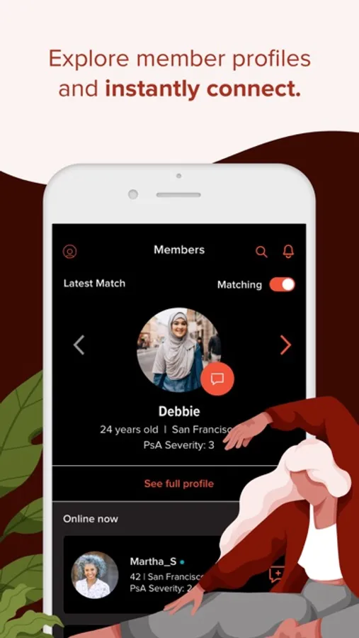 Our mission is to cultivate a space powered by the PsA community and empowered by each other. From one-to-one chats to conversation forums, we make connecting easy. This is a safe place to find and receive advice, to seek and offer support, and to discover the authentic stories of members, just like you.