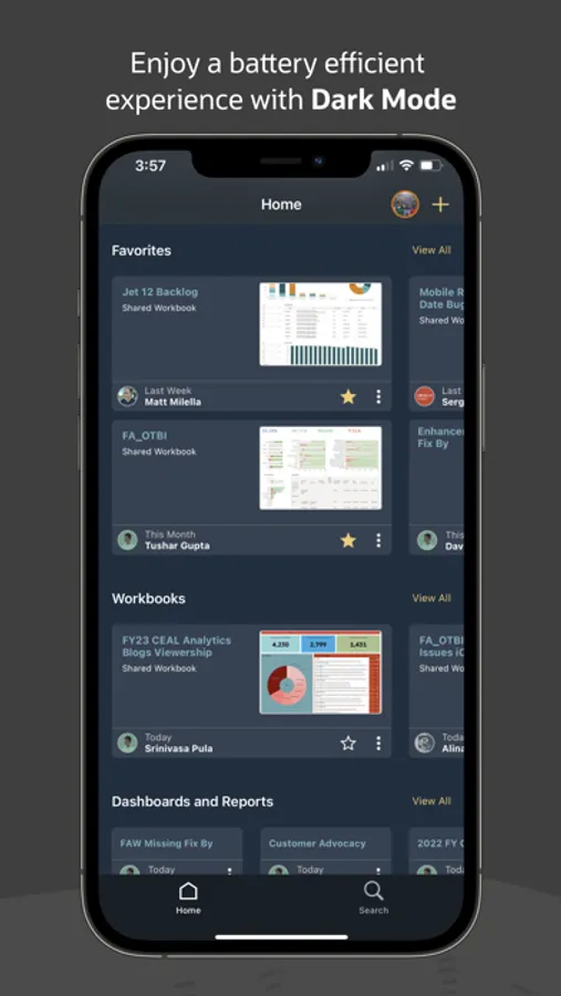 - Search for and view all your analytics content directly from your phone or tablet.