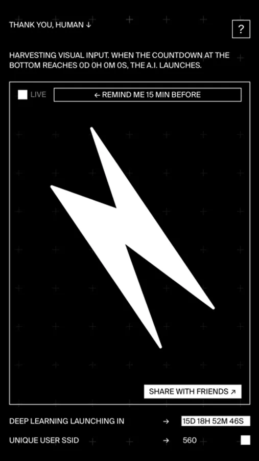 THE A.I. (GENERATIVE ADVERSARIAL NETWORK BASED ON DEEP LEARNING ALGORITHMS, TO BE EXACT) WILL LEARN ALL THE IMAGES UPLOADED TO THE SYSTEM, YOURS BEING ONE OF THEM. THEN IT WILL GENERATE THE n+1-th THUNDERBOLT, REFLECTING THE COLLECTIVE VISION OF WHAT OUR SYMBOL SHOULD LOOK LIKE. IT WILL EQUALLY CONTAIN EVERYONE'S IMAGE.