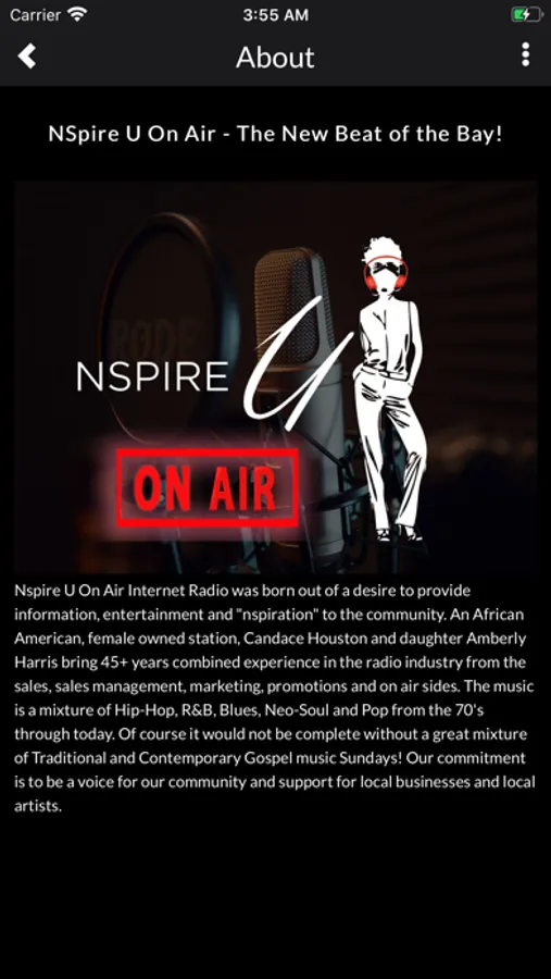 Nspire U On Air Internet Radio is a mixture of Hip-Hop, R&B, Blues, Neo-Soul, Gospel, and Pop from the 70's through today. Our commitment is to be a voice for our community and support for local businesses and local artists.