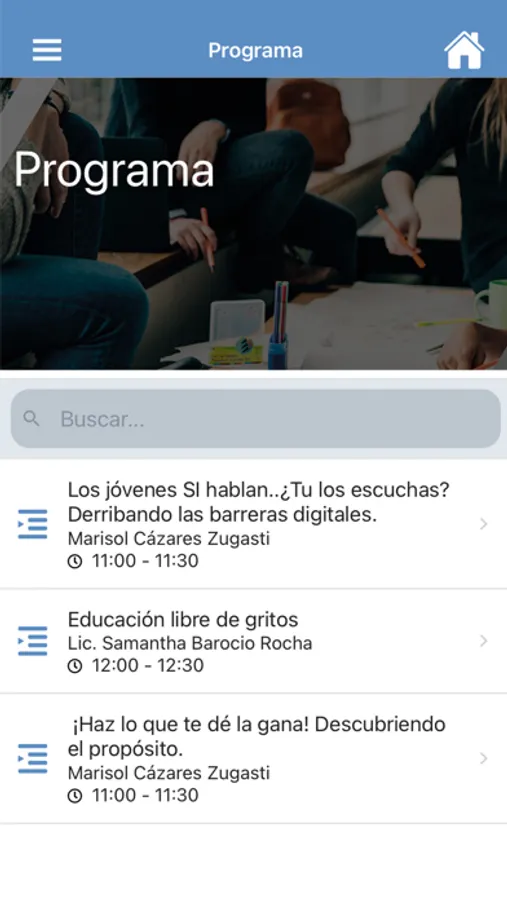 - El programa de sesiones sobre temas educativos y promoción de las instituciones participantes.