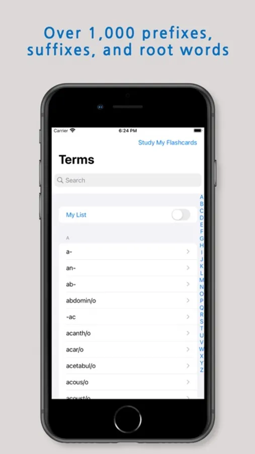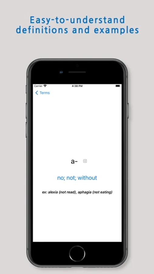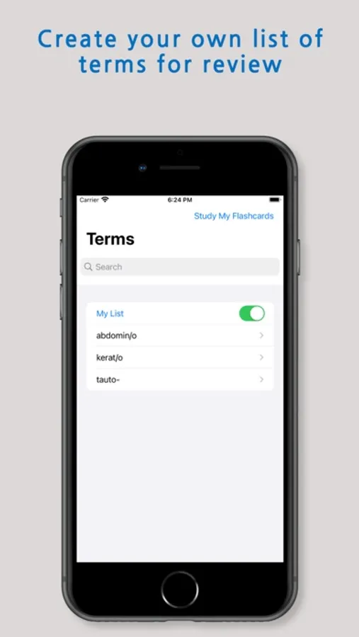 Whenever you read your textbook, lecture, or research article, and you come across an unfamiliar word, My Medical Terms allows you to search up that word’s prefix, suffix, or root word and read its definition and example terms. You can then add it to a personalized list to review later.