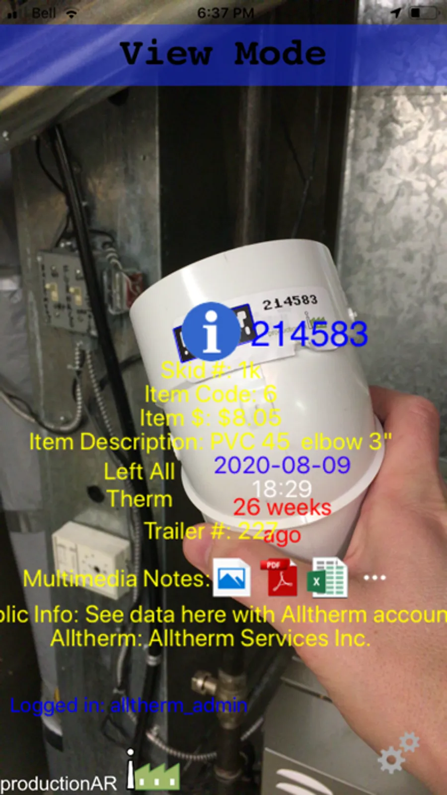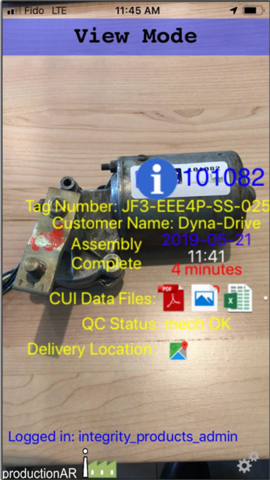 ProductionAR's "TagScan" augmented reality system aids your enterprise in tracking objects through a production and installation timeline, keeping track of items, signing online forms, or accessing manuals, service logs in the field.