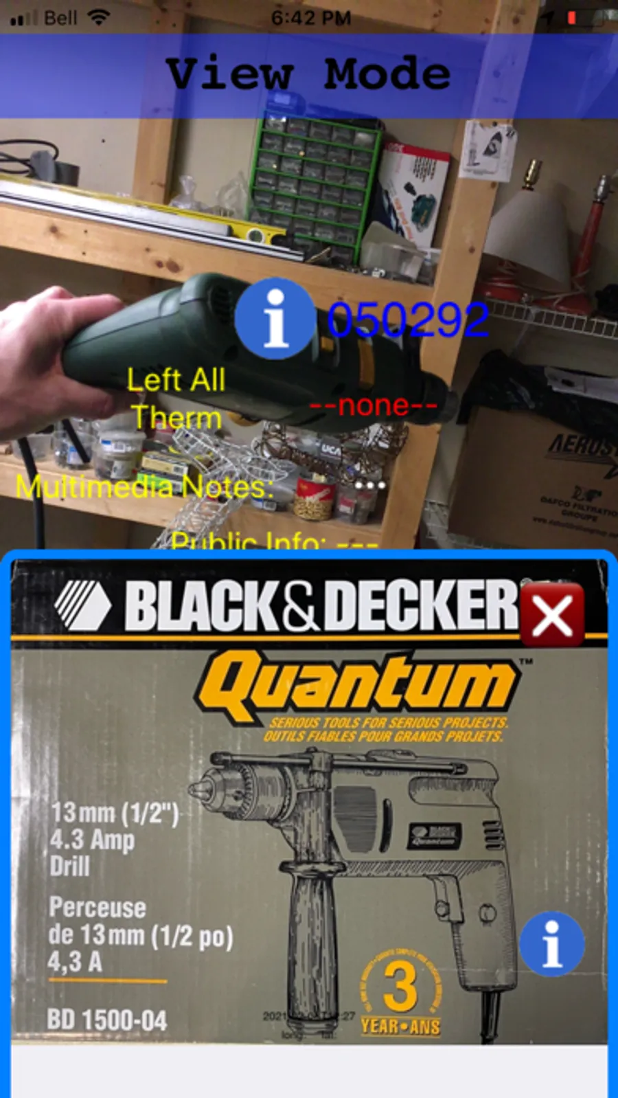 The system consists of a mobile app on your iPhone or iPad, a database in the cloud, a webpage portal, and our visual codes. The visual codes are special marker patterns you apply with stickers, laser etch, emboss, etc, or add to your existing labels you generate for your items.