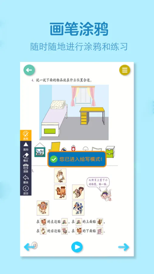 【2】画笔功能,全屏涂鸦让学习更加的有趣让学习更加高效率。完全同步最新发行教材,绝无缺漏页现象。