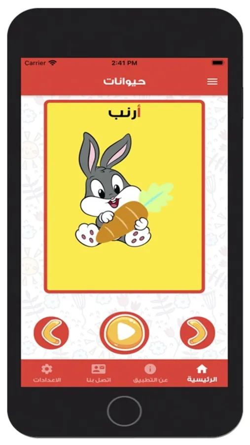 - يتضمن التطبيق نطق الحروف الهجائية العربية بثلاث أصوات (رقية – مريم – عائشة) بترتيب العمر.