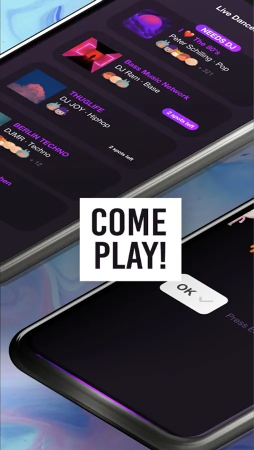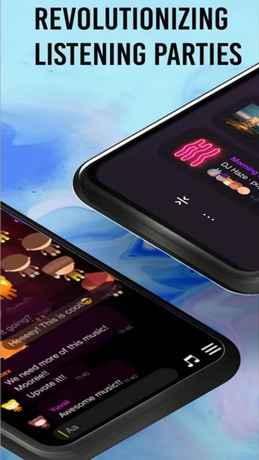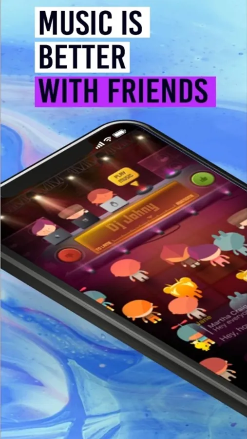 Show your approval for a song by clicking the green thumbs-up button on the vibe meter and make your avatar dance! Follow your friends to get notified whenever they start DJing. Chat live with playlist curators and artists you love.