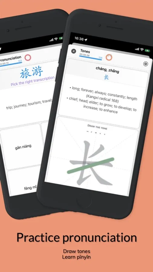 • Practice each Chinese character tone.