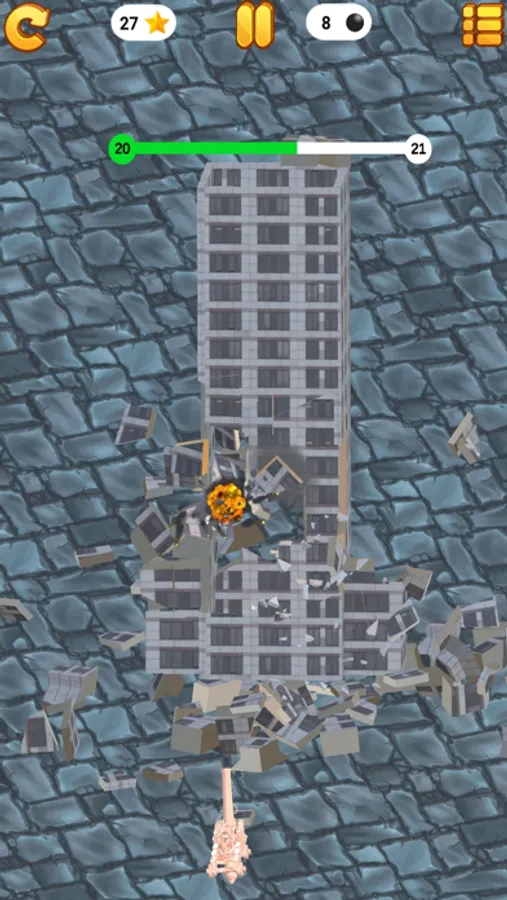 You will watch multiple type of buildings falling down by just shooting them with the cannon.
