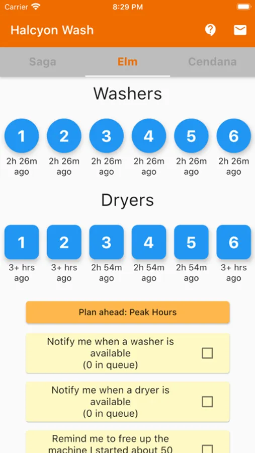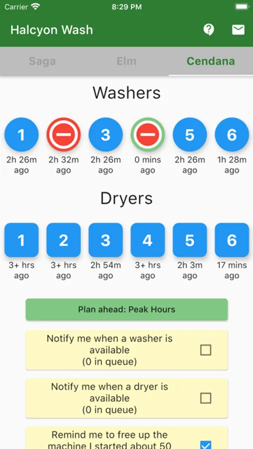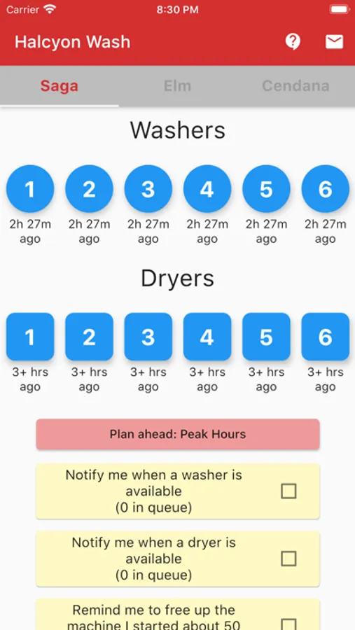 3: If there are no available machines, tap the "notify me of available washer/dryer" button.