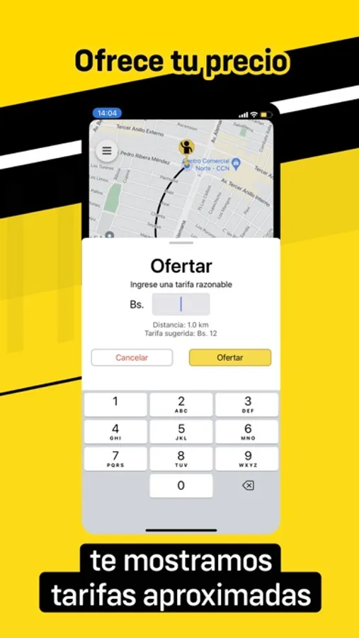 Seleccione su dirección de destino fácilmente, también tiene la opción de modificar y seleccionar su ubicación predeterminada de inicio, posteriormente puede ofrecer la tarifa que usted decida.