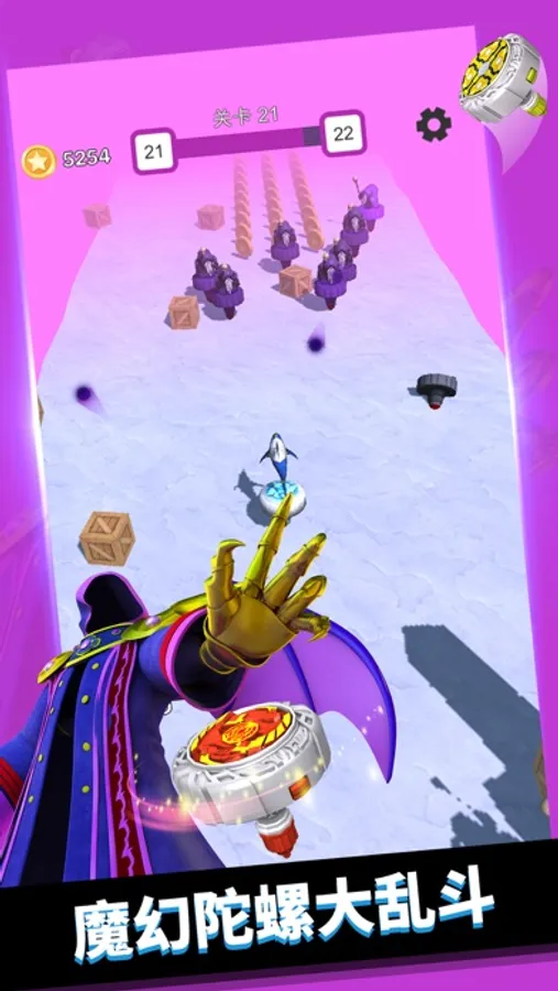魔幻陀螺大乱斗是一款动作闯关休闲小游戏,玩家需要操作陀螺在游戏中对阵十个敌人甚至更多。游戏操作比较简单,还有各种武魂可以解锁,丰富的关卡场景,玩家需要击败游戏关卡中所有敌人,来获取金币提升自己作战能力,从而变得更加强大。