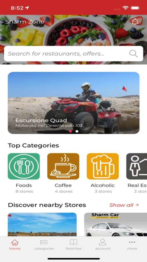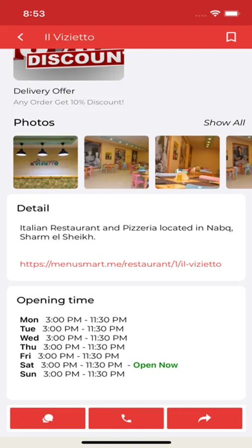 It helps you to discover different points of interests in Sharm el Sheikh, such as Supermarket, Hotels, Hospitals, Shopping malls, Restaurants, Coffee Shop and entertainment places, see their reviews, check their images,and their Offers, call their contact numbers and set the route map to desired point.