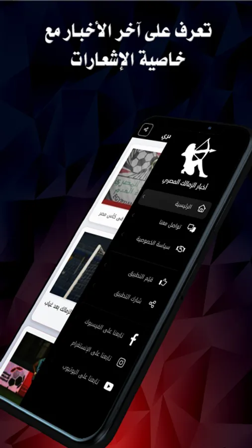 - التعرف علي الأخبار الهامة وبداية المباريات بالإضافة إلي الأهداف من خلال خاصية الإشعارات