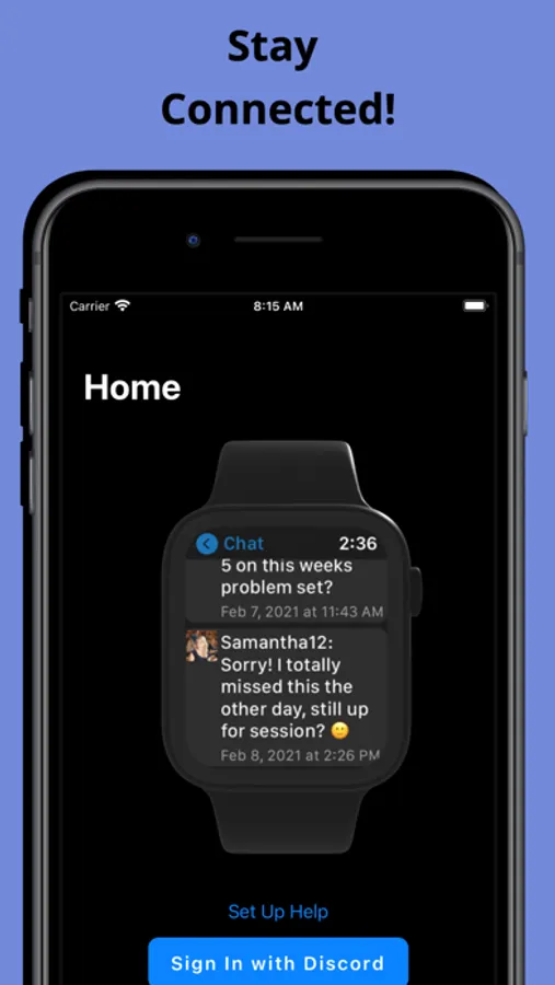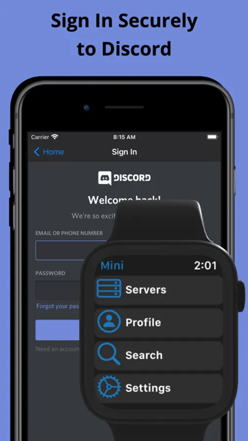 Sign In & Set Up: Users sign in to the app securely through Discord (directly). Our servers never get your information or credentials. You can sign out from the watch app under Settings at any time.