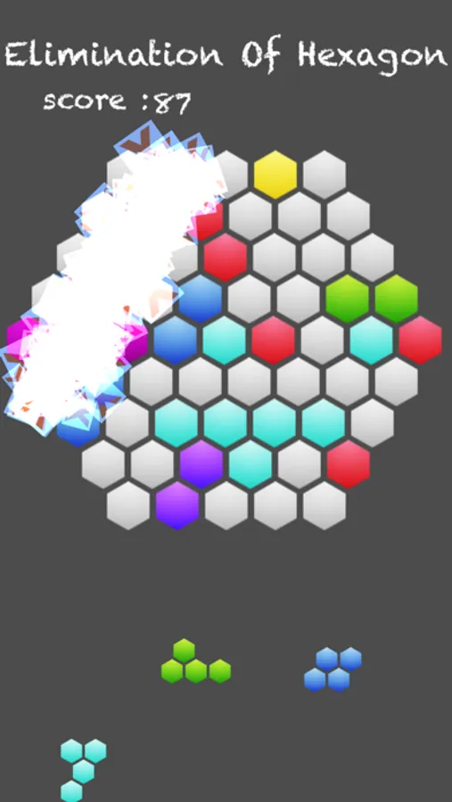 玩家就如同下棋一样,将底部出现的各种由六边形组成的图案摆放到上部由众多六边形组成的大六边形棋盘中,只要达到摆满棋盘中任意一条直线即可实现消除该条线上的所有六边形并得分