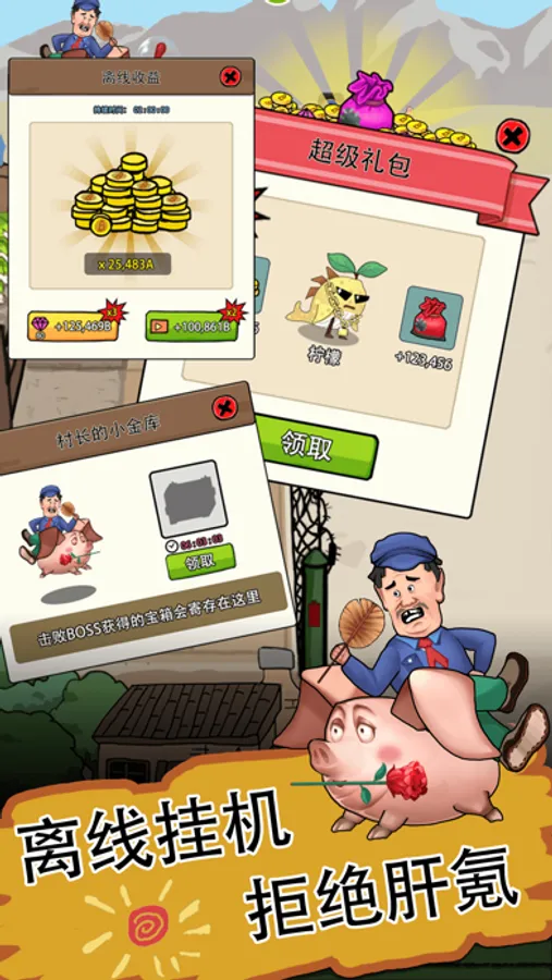 2、搞笑奇葩的村民角色。小学生、村花、武林高人、绿帽哥等超多搞笑角色等你来发现,还有庇佑全村的神兽等你来领取!