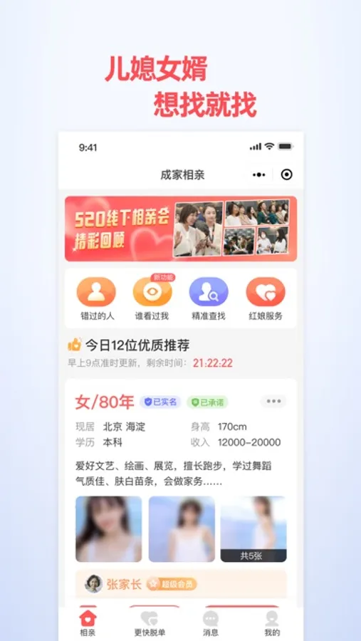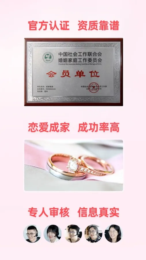 「成家相亲」是我国”婚姻家庭工作委员会”认证的专业相亲机构 ,权威靠谱。相亲资料全部经过真人审核,真实可靠。是全国100万家长都在用的相亲平台!