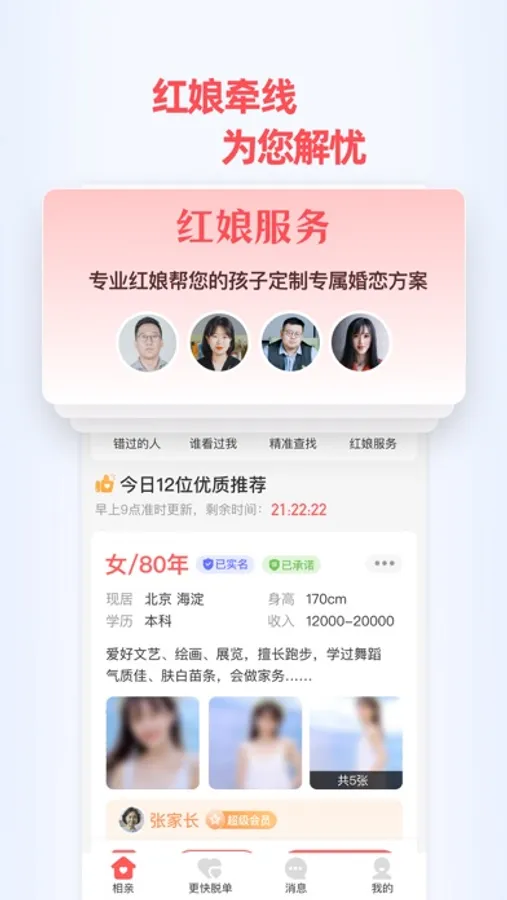 【金牌红娘】红娘为您牵线搭桥,帮您与孩子沟通,让孩子接受相亲,助孩子早日成家!