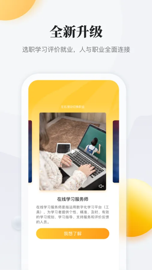 职虎2.0加入更多新职业,涉及教育、医疗健康、汽车、建筑、智慧农业、互联网、物联网7大领域,包含在线学习服务师、呼吸治疗师、互联网营销师、物联网安装调试员、农业经理人、职业培训师、健康照护师、老年人能力评估师、康复辅助技术咨询师、汽车救援员、二手车经纪人、建筑信息模型技术员、装配式建筑施工员、建筑幕墙设计师等新职业,为你提供更多样的选择。