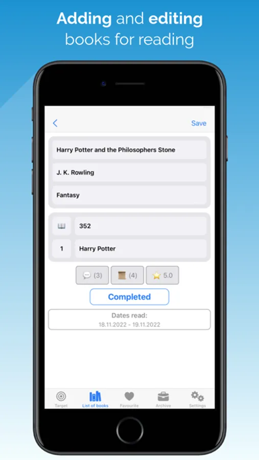 TARGETS. ListBooksEasy helps you plan the number of books to read for the year and month and monitor your progress.