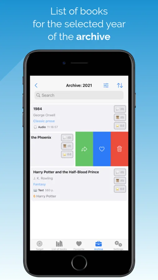 LIST OF BOOKS. In ListBooksEasy, you can create a list of books to read for the current year and use search, filtering by book categories, sorting and navigation between read and unread books for convenient work with the list. Adding, editing, deleting a book is available, as well as the ability to share.