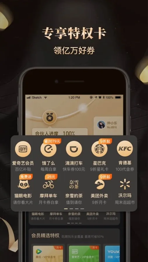 同样还提供多种生活权益折扣,外卖券5折、星巴克6折、喜茶7折等等等,致力于以更低价格提供给会员高品质的生活服务。